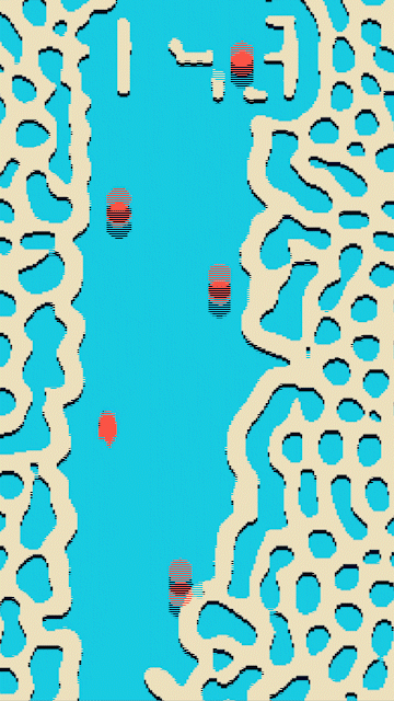 The enemy’s behavior was driven by a reaction-diffusion system, inspired by Karl Sims’ work (https://karlsims.com/rd.html).