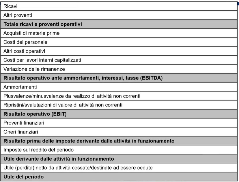 Prima parte conto economico riguarda i ricavi e i costi operativi.