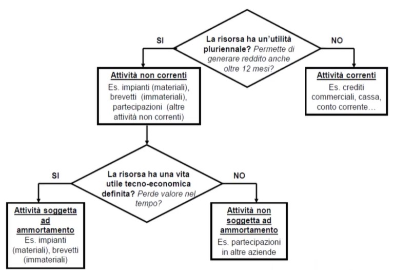 - Attività: Risorse controllate dall’impresa, risultato di operazioni svolte in passato, dalla quale ci si attende un afflusso di benefici economici futuri.
