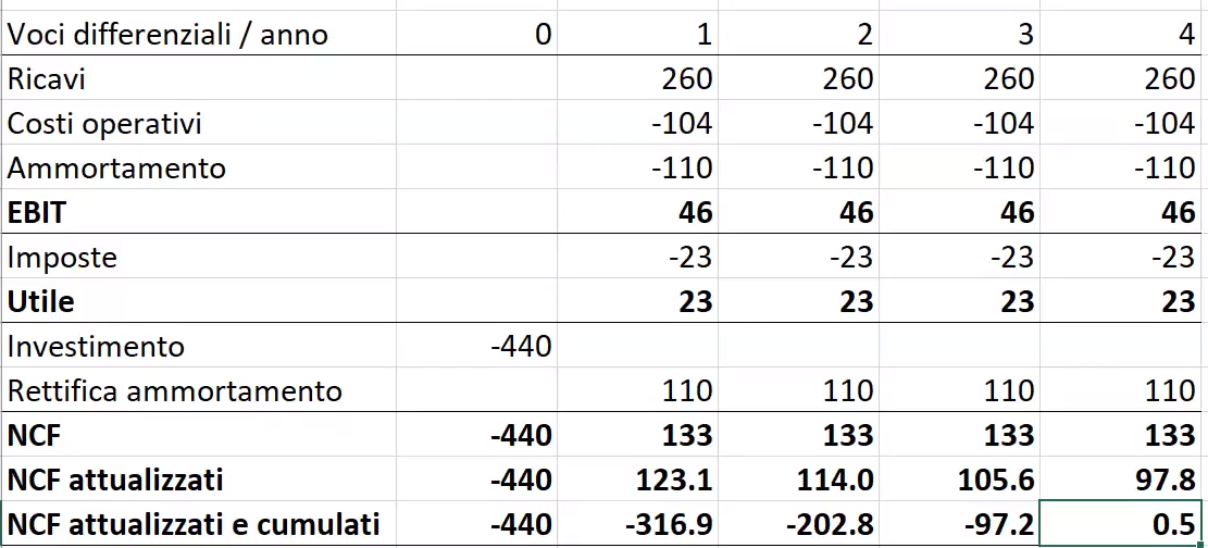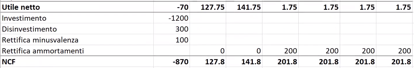 Negli esercizi, spesso quando ci sono in ballo crediti/debiti e stiamo valutando l’investimento su un periodo di anni, quasi sicuramente ci toccherà riportare anche una colonna esima proprio per il fatto che dobbiamo tener conto della variazione del CCN.