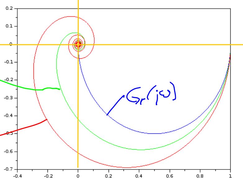 Il diagramma di Nyquist è il diagramma polare ‘specchiato verticalmente ed eventualmente con ‘l’infinito’ che si chiude a semicerchio.