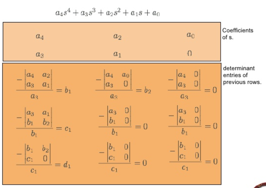 In pratica riassunto: usa la tabella di Routh per evitare la diagonalizzazione, guarda sempre la prima colonna, appena trovi un elemento con segno discorde dagli altri di fermi e dici che il SD in quel punto d’equilibrio è instabile