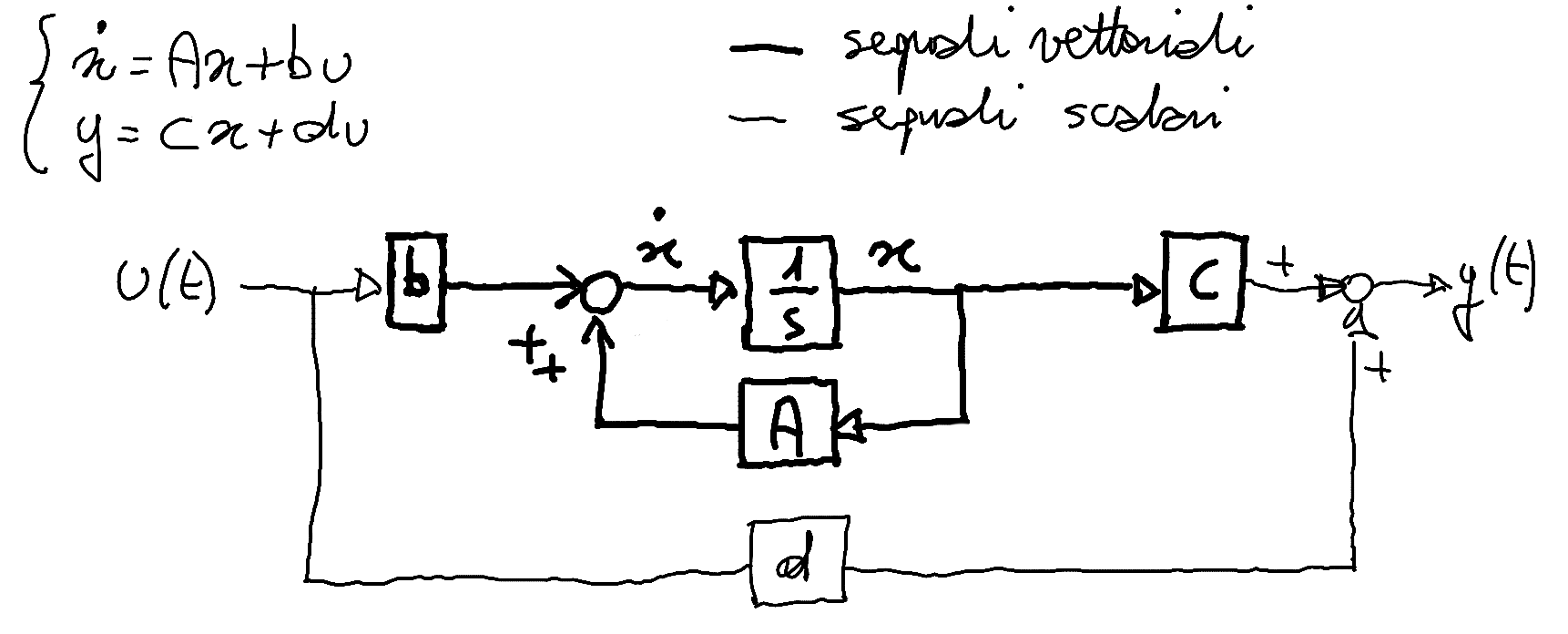 Possiamo esprimere i SD come schemi a blocchi, nei quali ogni blocco rappresenta una e quindi un “sotto sistema dinamico”. Ogni blocco può essere poi suddiviso in ulteriori blocchi, i quali sono gli addendi che compongono la . NB: non c’è un prima o un dopo negli schemi a blocchi. Bisogna vedere il tutto come un’unica equazione e non pensare più in ottica temporale, ma in ottica di ‘segnali’.
