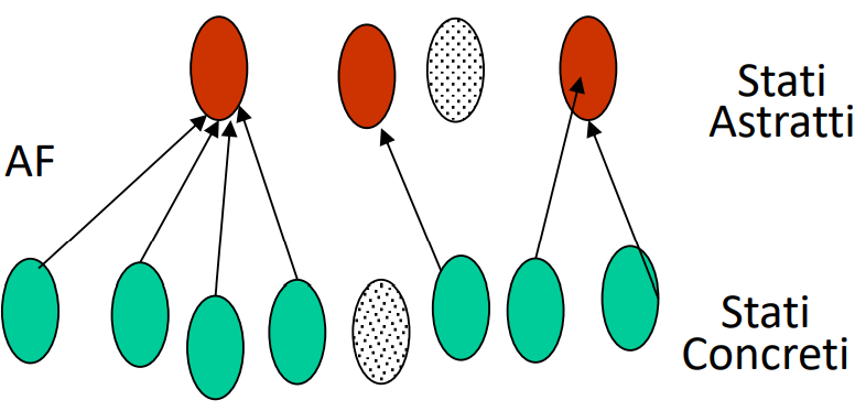 La Funzione di astrazione è una funzione non iniettiva che associa a ogni stato concreto al più uno stato astratto: molti stati concreti possono essere associati allo stesso stato astratto (es. [1,2,5] e [2,1,5] corrispondono allo stesso stato astratto {1,2,5} nel caso del ADT dell’insieme di interi).