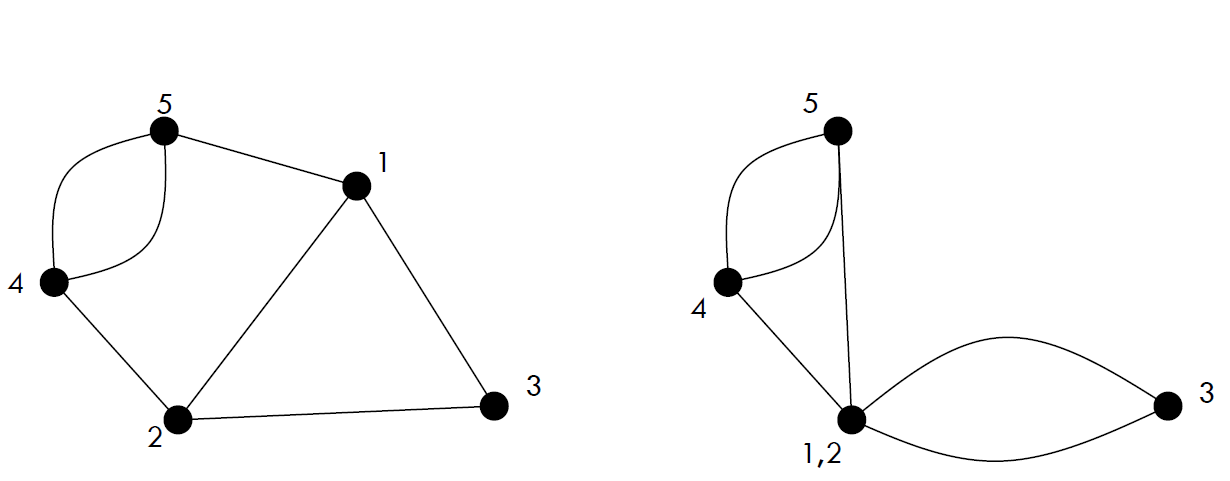 The Karger’s algorithm consists in contracting edges uniformly at random until only two vertices remain. These two vertices correspond to a partition of the original graph and the edges remaining in the two vertex graph correspond to a cut in the original input graph. The number of edges in the resultant graph is the cut produced by Karger’s algorithm.