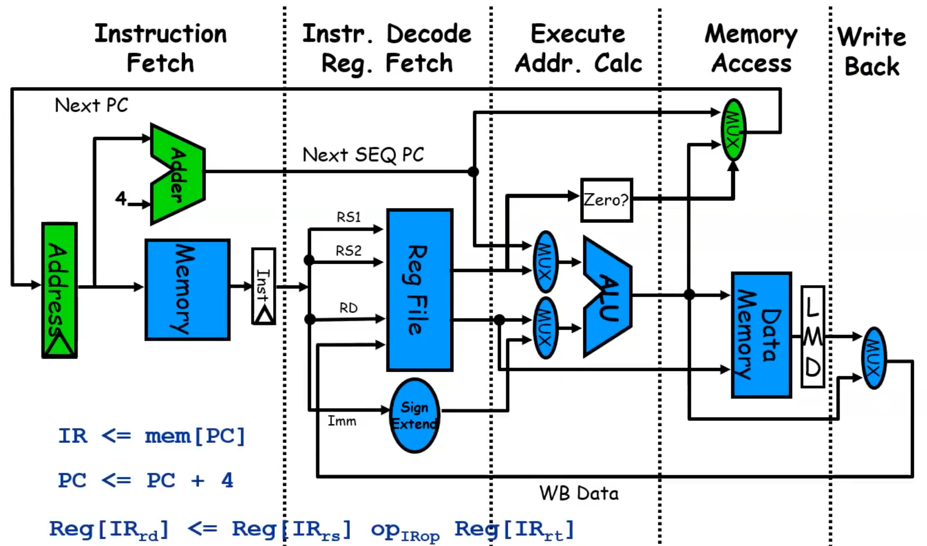 - Structural Hazards: Attempt to use the same resource from different instructions simultaneously. Example: Single memory for instructions and data
