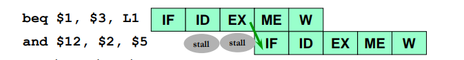 And also if the previous instruction is a load instruction, 2 stall cycles are needed in order to allow MEM/EX forwarding the result of the load.