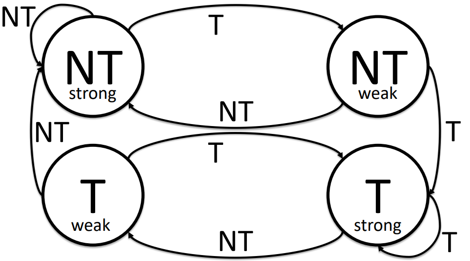 A 2-bit saturating counter is a state machine with four states.
