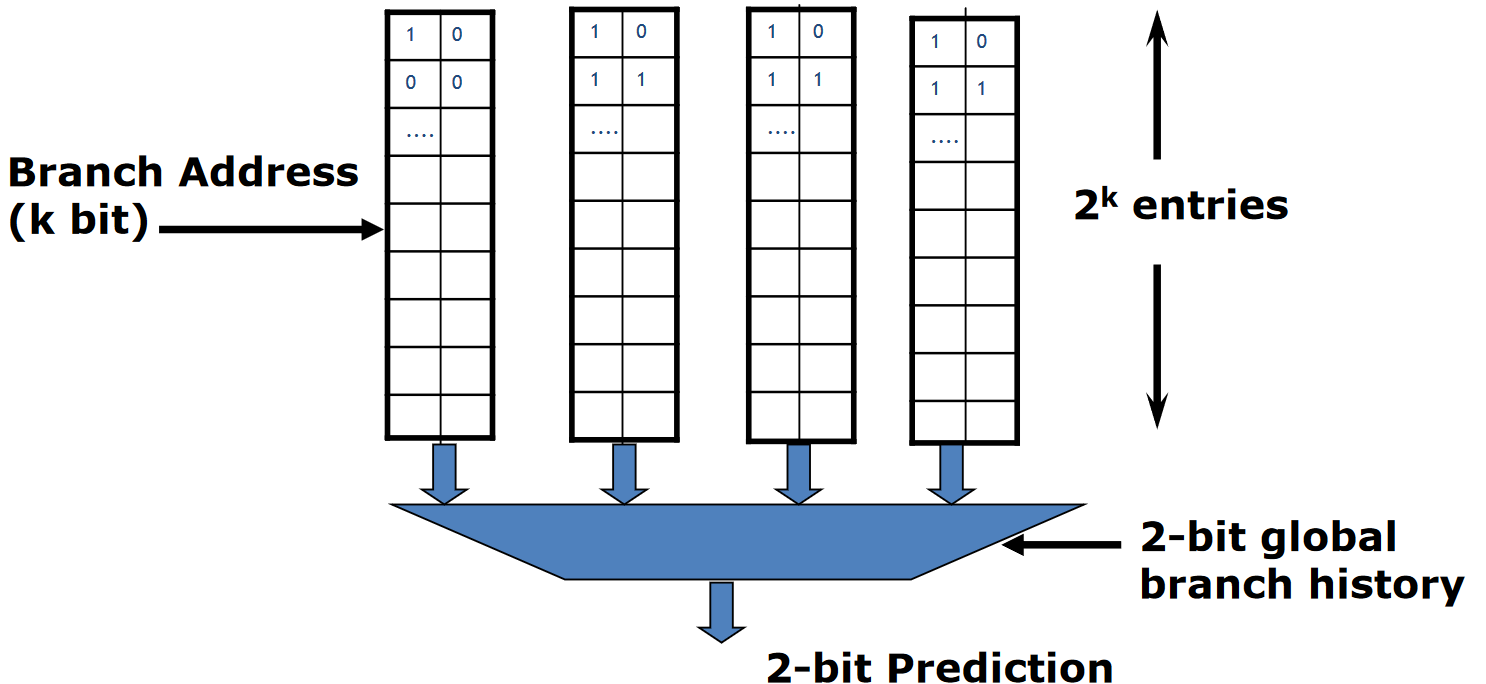 Dynamic branch prediction helps to predict the outcome of a branch instruction dynamically adapting to the program, using the past behavior. The idea is to use a Branch History Table. A BHT is a “cache” which contains 1 (or 2) bits for each entry (which is an hash of the branch address (indeed since it is an hash function, collisions are possible)) to indicate if the branch was recently taken.