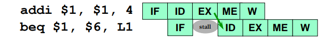 - With early evaluation, we can calculate the branch outcome in the ID stage by adding additional hardware resources. The outcome of the branch condition is going to be available in the ID stage and only 1 stall is needed.