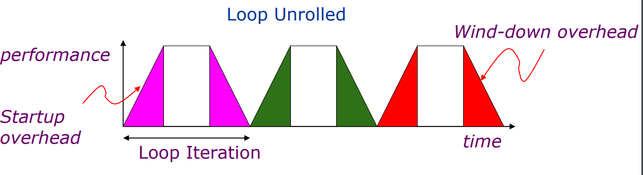 - Loop unrolling & loop peeling: Unrolling exposes more computation that can be scheduled to minimize stalls. If there aren’t loop-carried dependencies we can “unroll” the iterations of any loop and perform them in a parallel way.