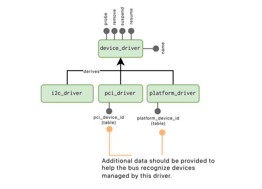 all of these are structures which are extended with custom data. For example, the pci_driver