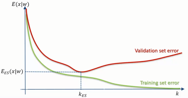 - Early stopping wastes data but works out of the box. No hyperparameter. Early stopping is also possible to the trick to put “all together” epochs/number of neurons in one “last training”.