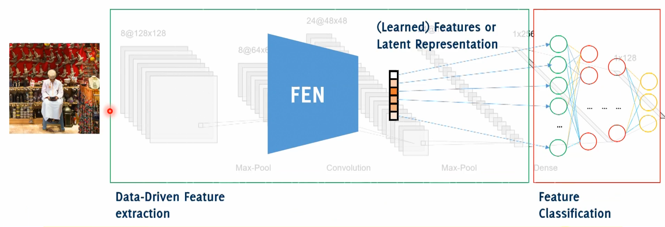 A CNN consists of a feature extraction section, which is powerful and general purpose, and a classifier, which is task-specific.