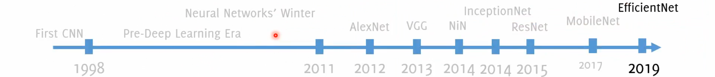 - VGG16 (2014): a deeper variant of the AlexNet convolutional structure where smaller filters are used while focusing on the role of network depth. The idea: “smaller filter but deeper network”. Multiple convolution in a sequence achieve large receptive fields (than larger filters in a single layer) with less parameters and more nonlinearities.