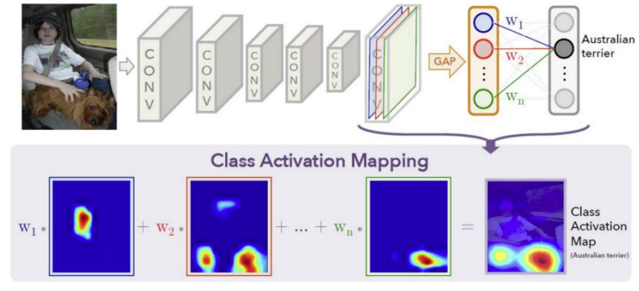 - How It Works: it requires a specific architecture: global average pooling (GAP) followed by a dense layer. , where are the weights from the GAP layer to the output for class , and is the activation of feature map at position .