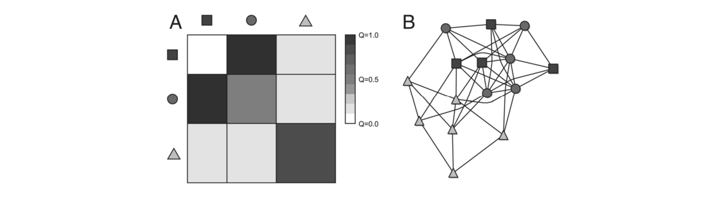 We can then (based on probabilities on connecting nodes between different groups (or the same group) define a matrix adjacency.
