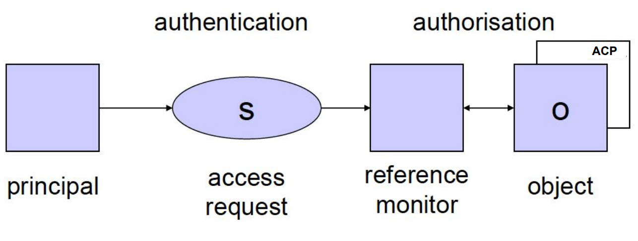 - Access Control Lists: focused on objects, for each object there is a list of subjects and authorizations.