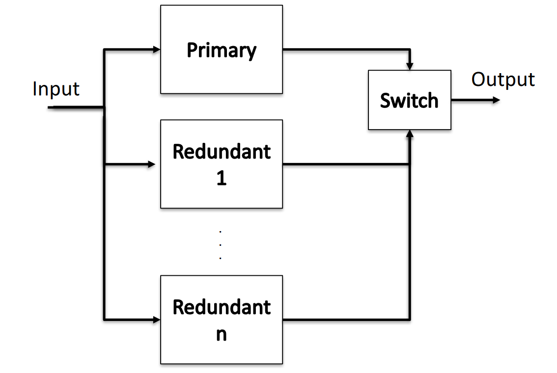 A system having one primary replica and n redundant replicas (with identical replicas and perfect switching).