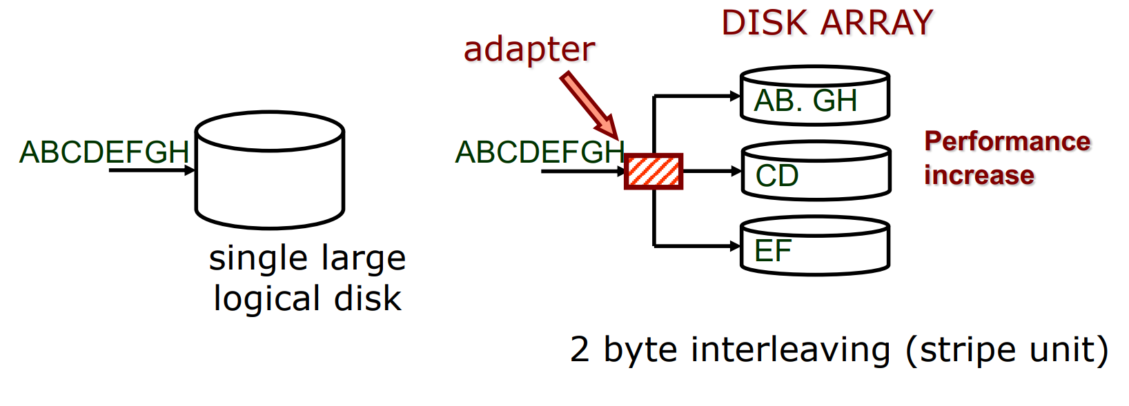 RAID increases performance, size, and reliability of storage systems by utilizing several independent disks as a single, large, high-performance logical disk. Data is striped across multiple disks, allowing for high data transfer rates as well as load balancing across the disks. 2023-07-04 Two orthogonal techniques: