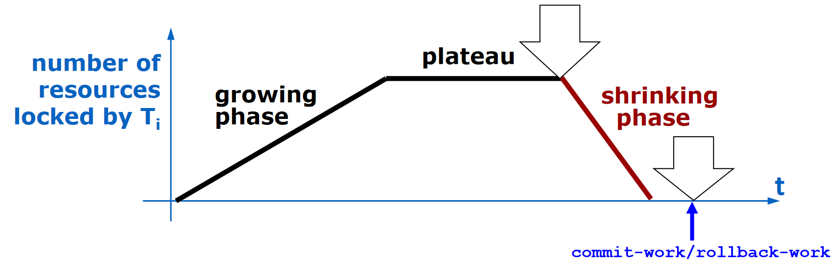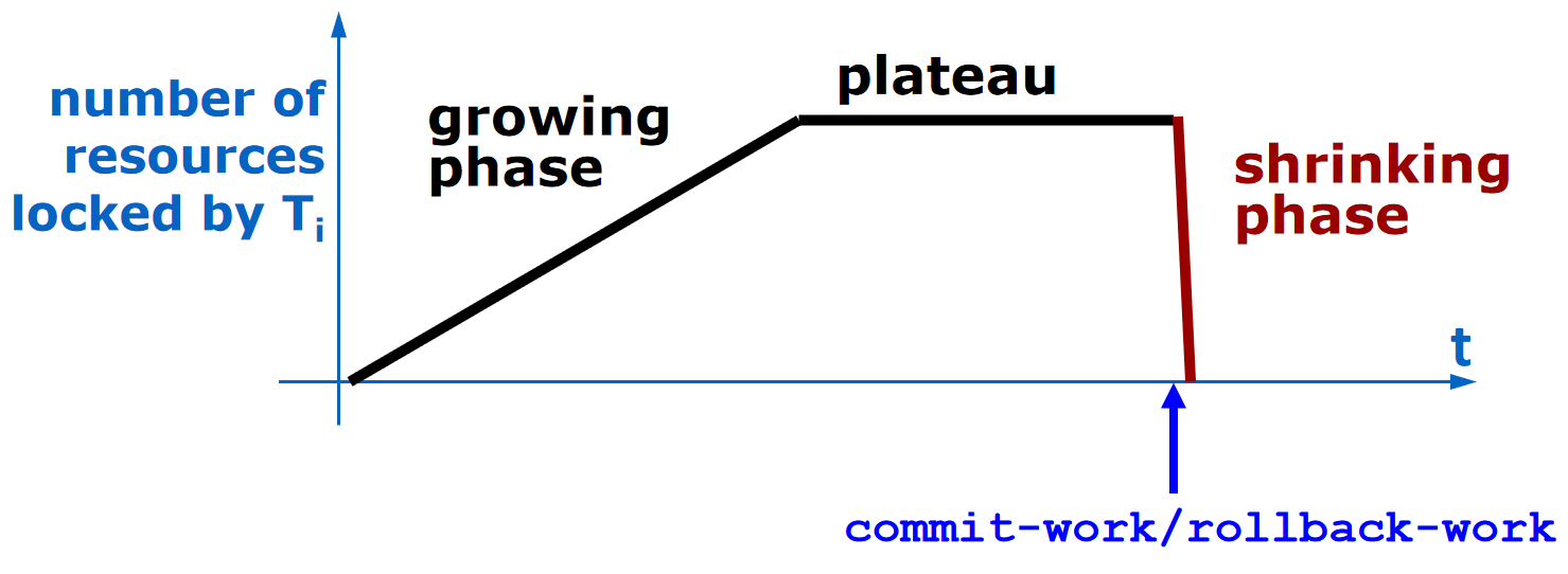 - In the same transaction all the locks must precede the unlocks: showing an evident growing phase, a plateau and a shrinking phase.