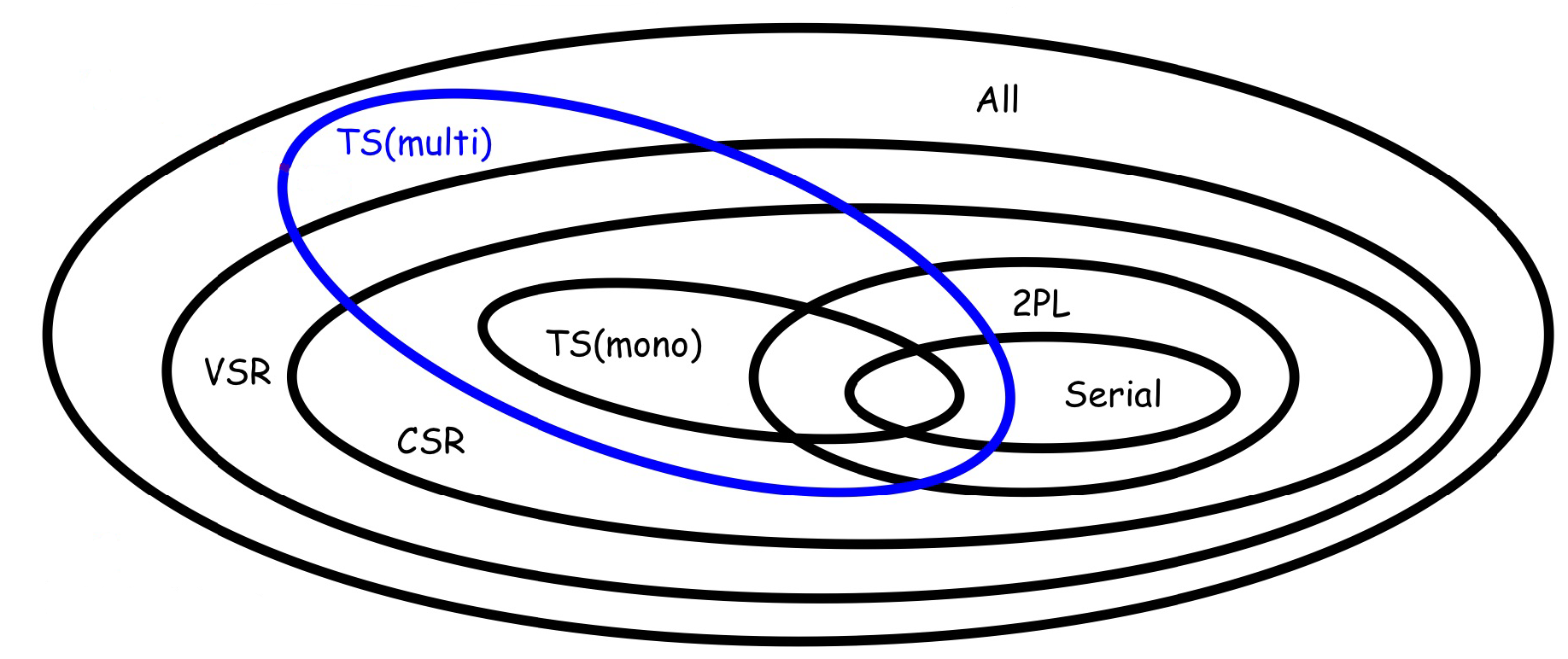 TS Multi is basically TS Mono multi-versioned. Since every DBMS have to guarantee an ‘undo command’ it’s very ‘natural and logic’ use a multi-versioned system (It’s used actually).