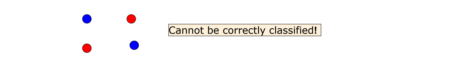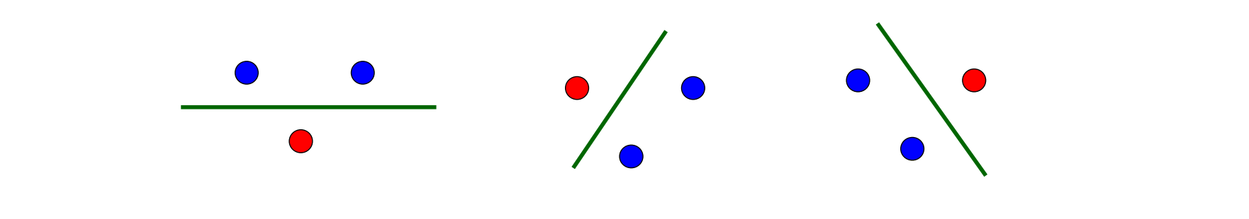 So if we have an -dimensional dataset and use a linear classifier model () then according to VC theory, there will always exist some combination of weights such that any set of up to data points can be perfectly classified into two groups using this model. Other examples of are: