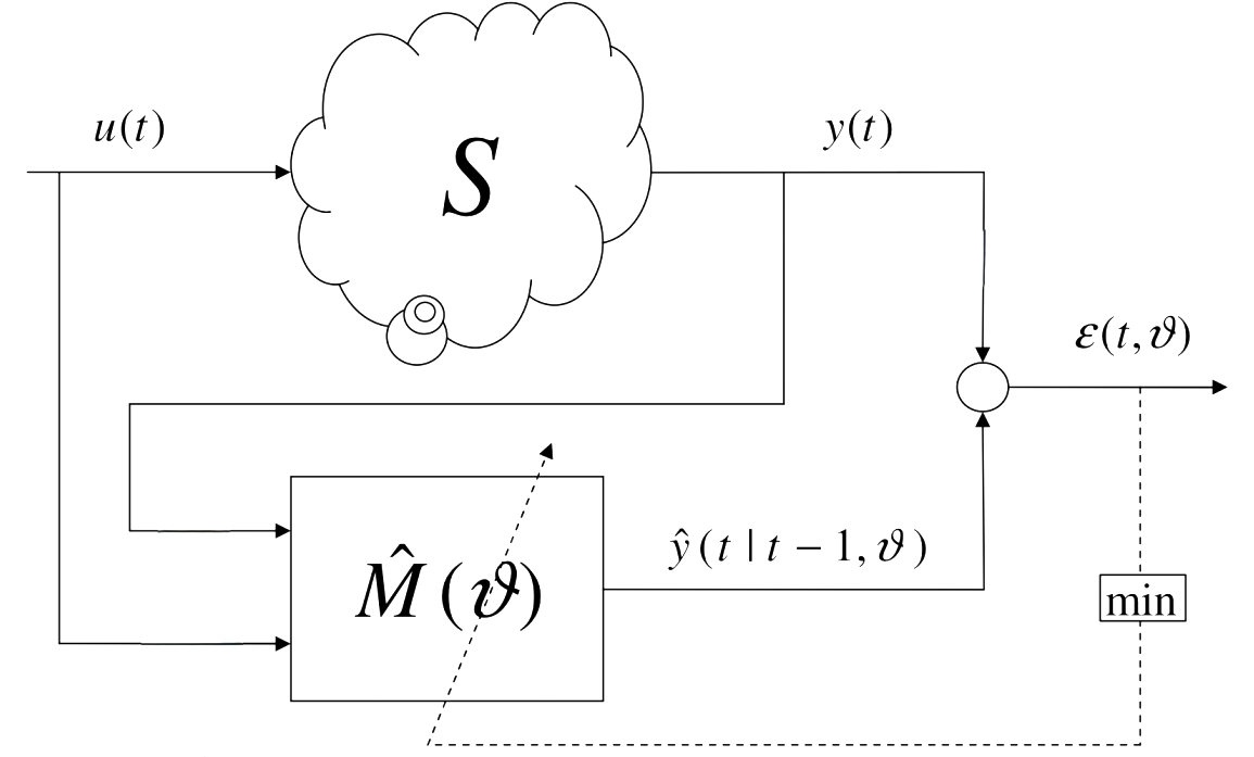 Define the prediction error criterion as we said before: $$J_N(\vartheta)=\frac{1}{N}\sum_{i=1}^{N}\left(\mathrm{y}(i)-\hat{y}(i\mid i-1,\vartheta)\right)^2=\frac1N\sum_{t=1}^N\left(y(t)-\varphi(t)^T\vartheta\right)^2$$ A good model should return a low empirical variance of the prediction error. Substitute the predictor expression:J_N(\theta) = \frac{1}{N} \sum_{t=1}^N (y(t) - \phi(t)^T \theta)